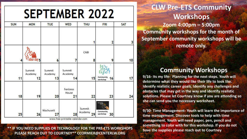 More information about other services Pre-ETS provides can also be found here: Youth – Center for Living & Working (centerlw.org)