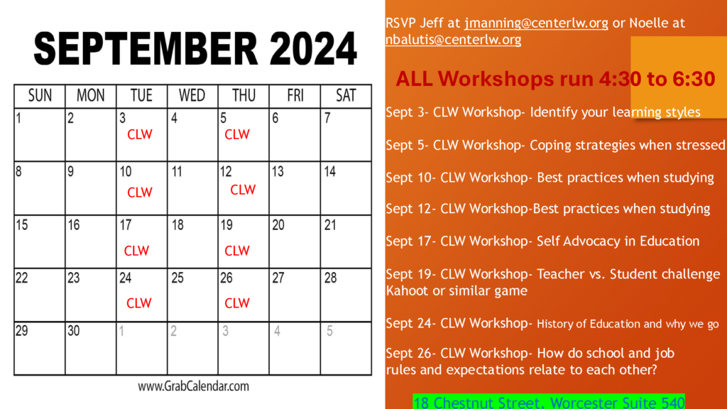 Sept 3- CLW Workshop- Identify your learning styles